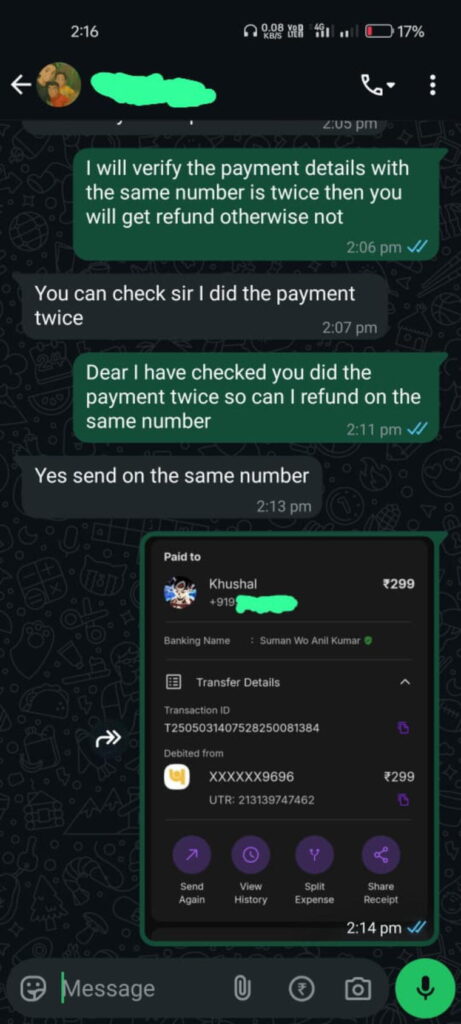You can message on this whatsapp numbers 8607413010 and get refund instantly without a single question asked.